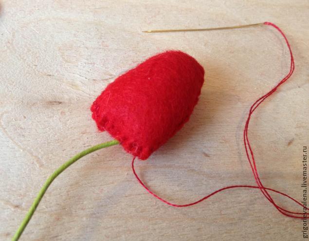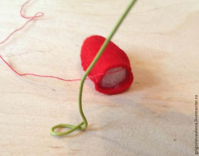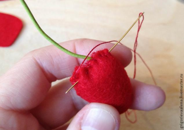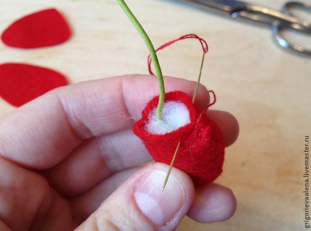 "Топим" наш кончик в синтепоне и зашиваем ягодку.