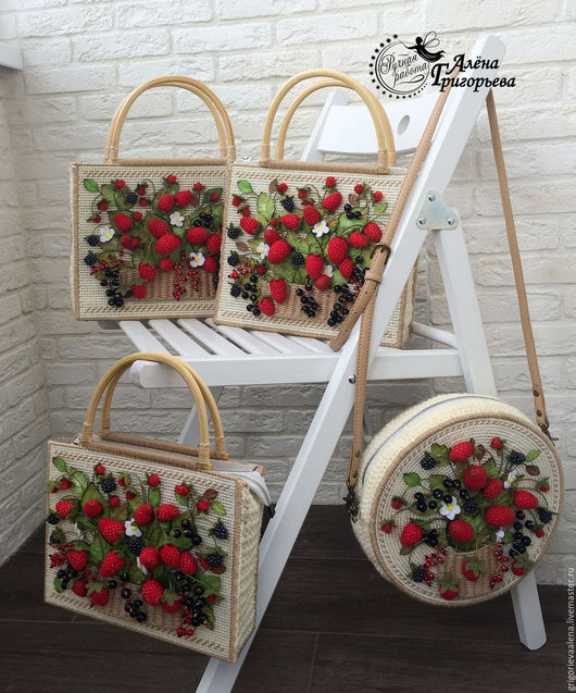 Делать такие клубнички очень просто! Их можно использовать в качестве заготовок для серег или брошей, украшения подарочных коробочек и упаковок или сделать их, например, для детских игр. Такие клубнички из фетра я делала для декорирования своей сумки.